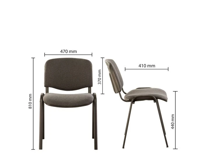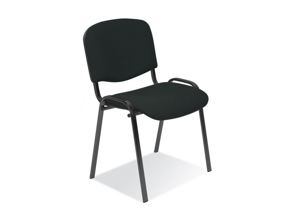Krzesło konferencyjne z ramą metalową lakierowaną na kolor czarny. Siedzisko i oparcie tapicerowane pianką tapicerską oraz czarną tkaniną (C11). Szkielet siedziska ze sklejki. Stopki nierysujące podłogi. Możliwość ustawiania w stos do 10 szt.