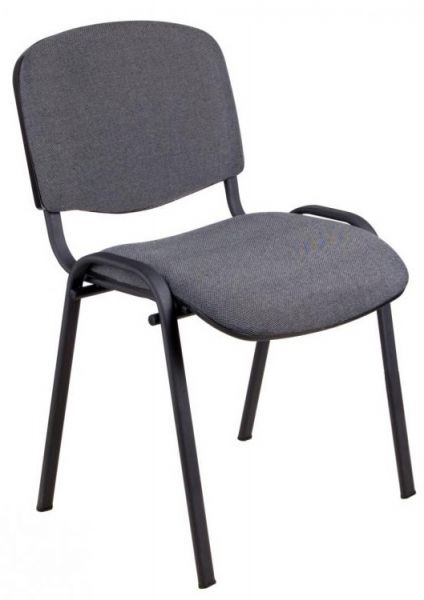 Krzesło konferencyjne z ramą metalową lakierowaną na kolor czarny. Siedzisko i oparcie tapicerowane pianką tapicerską oraz szarą tkaniną (C38). Szkielet siedziska ze sklejki. Stopki nierysujące podłogi. Możliwość ustawiania w stos do 10 szt.