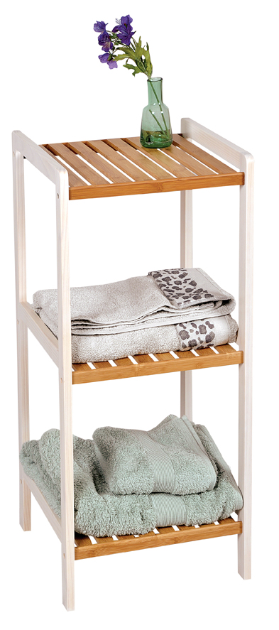 Wykonany z drewna bambusowego oraz sosnowego. Wymiary: szerokość 34 cm, głębokość 33 cm, wysokość 78 cm