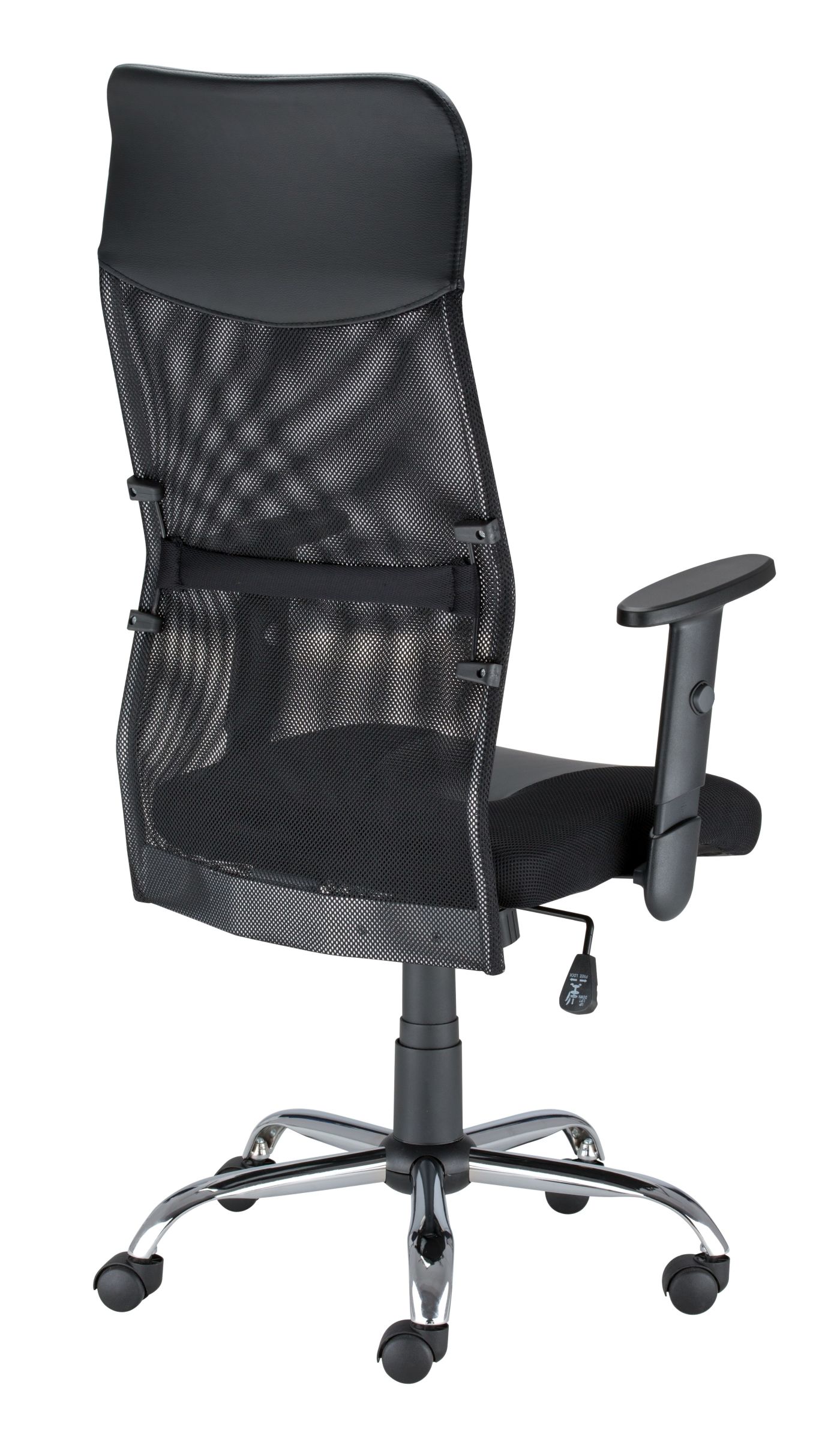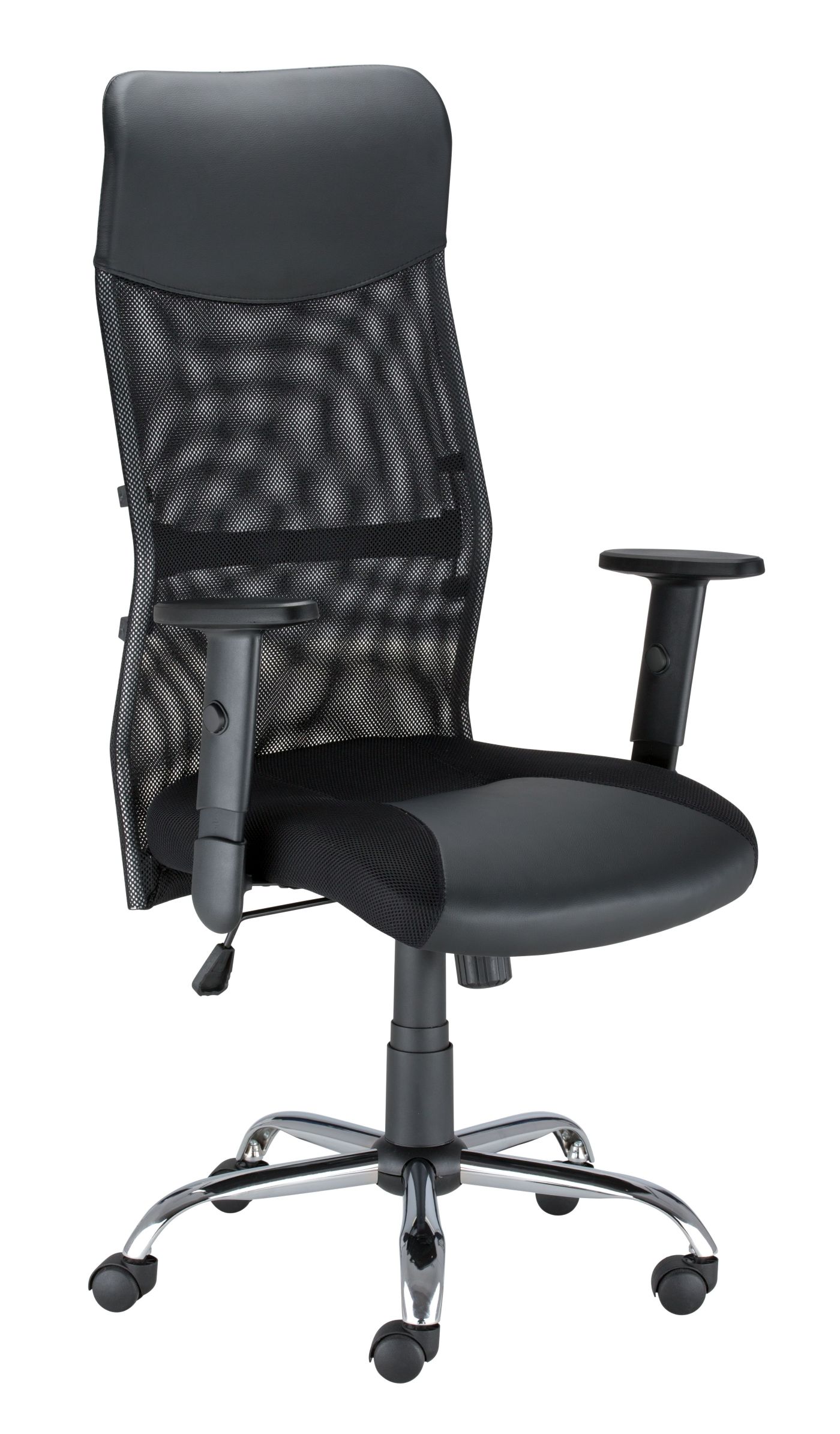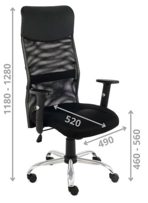 Fotel TOPLINE posiada siatkowe oparcie w górnej części tapicerowane eko-skórą oraz siedzisko tapicerowane pianką i tkaniną 3D. Podłokietniki regulowane 1D. Mechanizm kołysania się z możliwością blokady w pozycji do pracy. Regulacja siły wychylenia oparcia. Podstawa metalowa, chromowana z kółkami do powierzchni twardych.