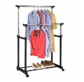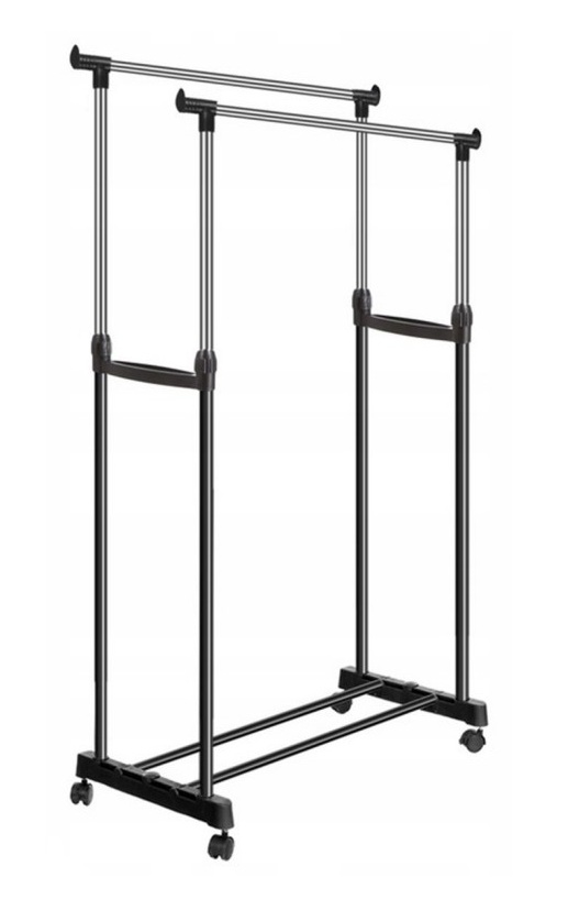 Podwójny stojak na ubrania PAXER z regulowaną wysokością drążków. Wykonany ze stali nierdzewnej.