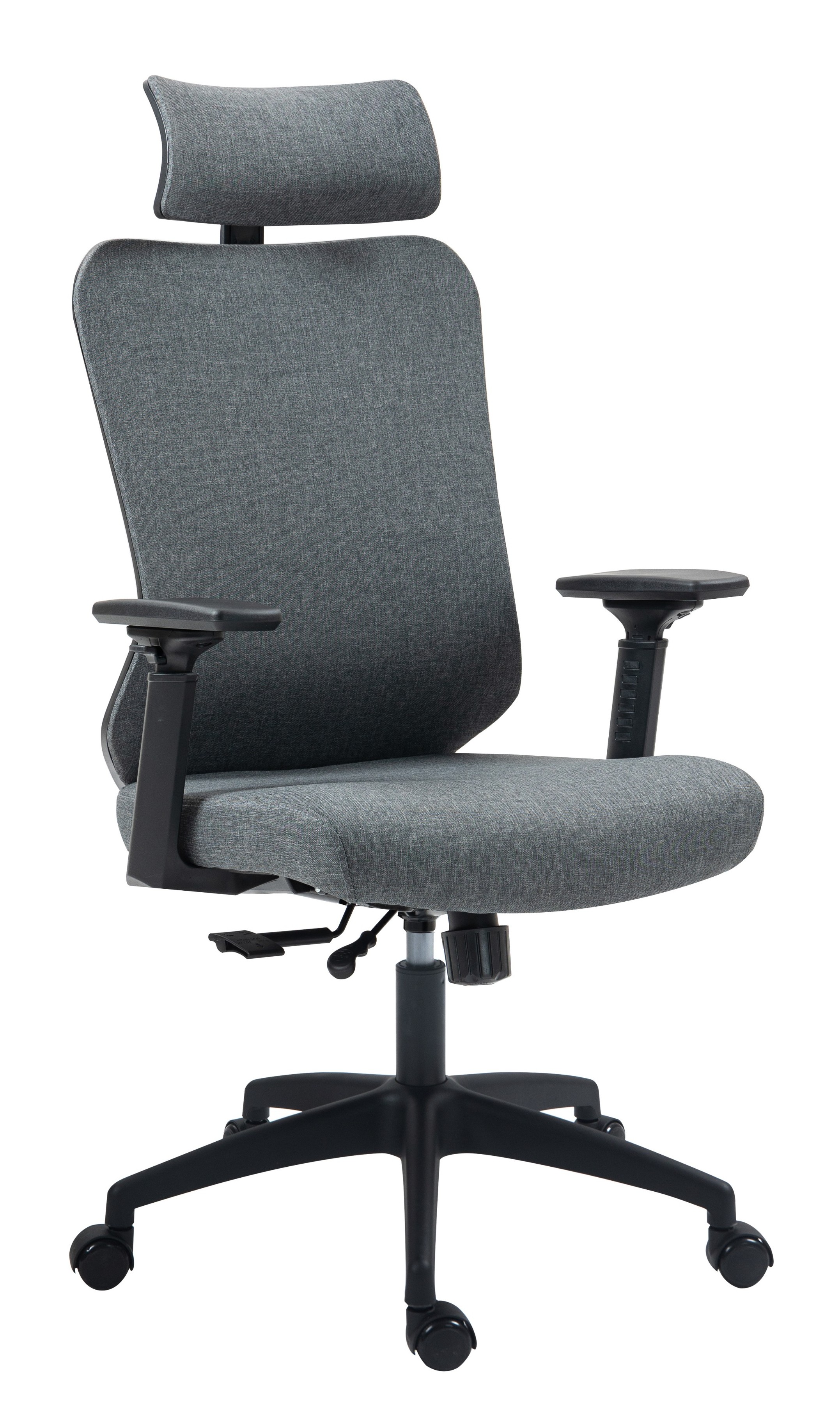 Fotel ergonomiczny ERGOBIT tkanina szara posiada tapicerowane oparcie z zagłówkiem oraz siedzisko. Mechanizm z regulacją siły wychylenia oparcia i funkcją "ANTI-SHOCK". Wychył oparcia z możliwością blokady w czterech pozycjach. Wysuw siedziska. Regulowana wysokość i głębokość poduszka oparcia odcinka lędźwiowego kręgosłupa. Zagłówek 2D tapicerowany tkaniną. Podłokietniki 3D z nakładką PU regulowane w pozycji: góra-dół, ruch nakładki przód-tył i na boki. Płynna regulacja wysokości krzesła. Nylonowa podstawa z kółkami do powierzchni twardych. Fotel posiada pozytywny Protokół Oceny Ergonomicznej.