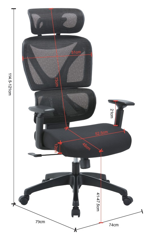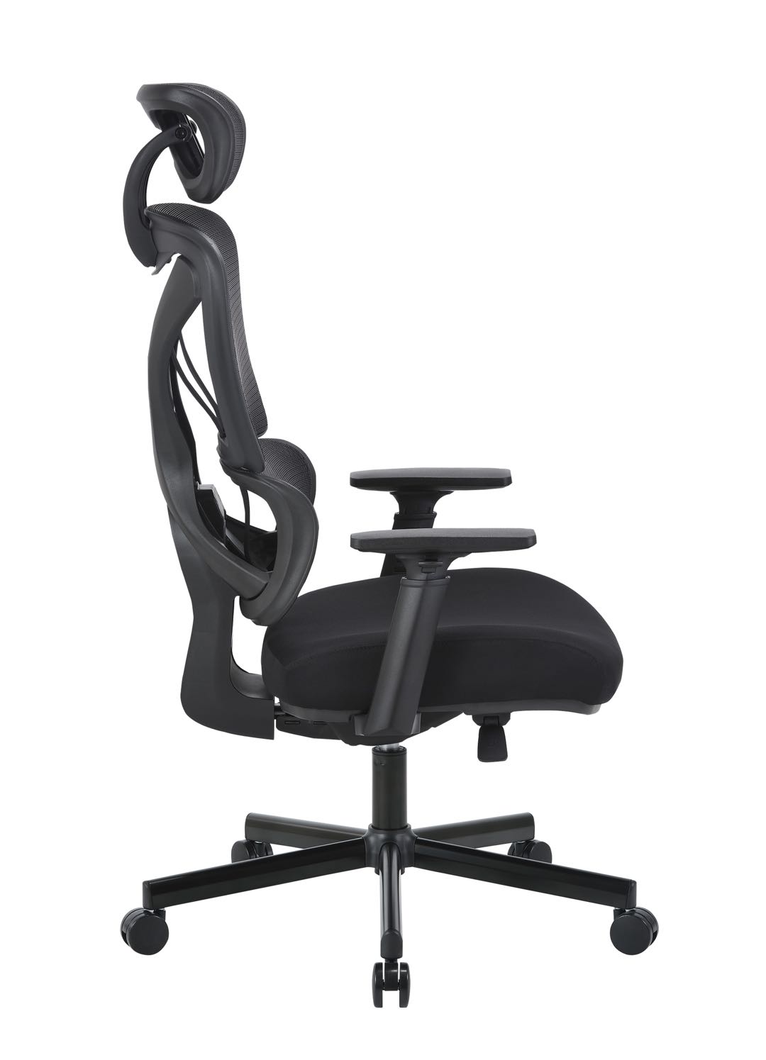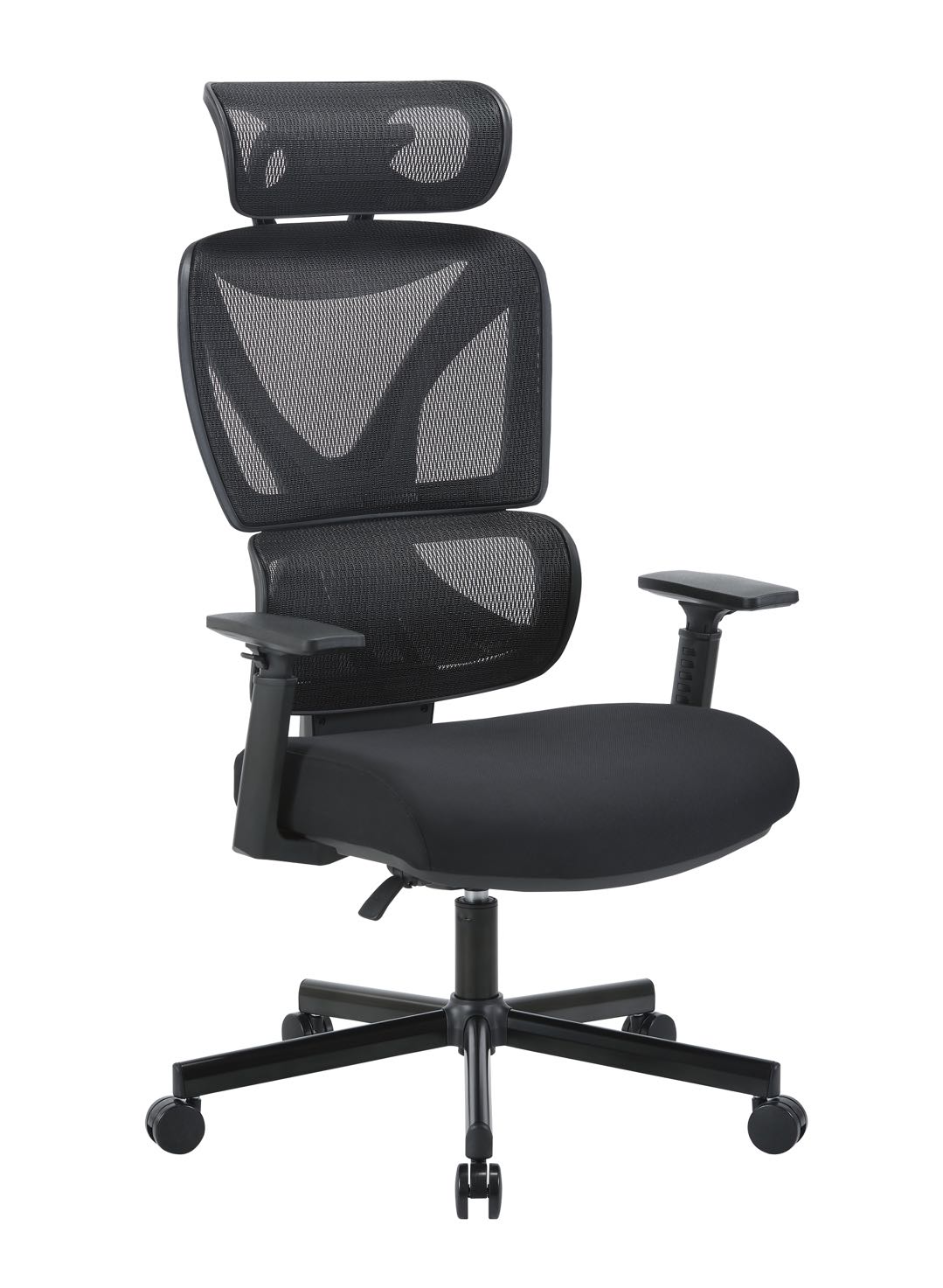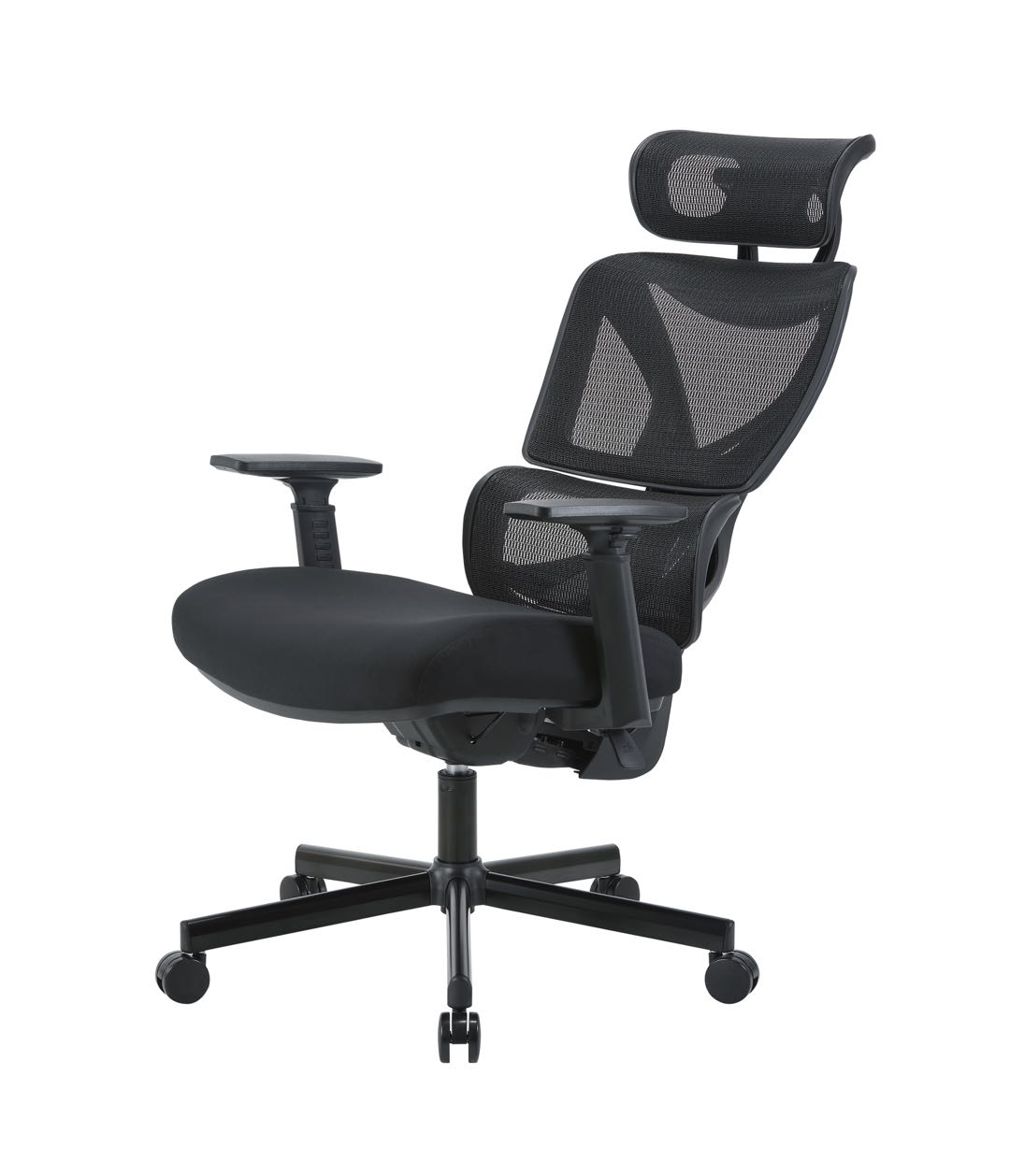 Fotel ergonomiczny ERGOLAB posiada oparcie złożone z dwóch części. Dolna część jest elastyczna, wspiera niezależnie lędźwiową część kręgosłupa i jest tapicerowana elastyczną siatką, dopasowującą się do pleców użytkownika. Siedzisko tapicerowane jest pianką i tkaniną. Zagłówek tapicerowany siatką z regulacją wysokości oraz kąta nachylenia. Podłokietniki 1D (regulacja góra - dół). Mechanizm kołysania się z możliwością blokady w dowolnej pozycji z funkcją "ANTI-SHOCK". Podstawa nylonową oraz kółka do powierzchni twardych.