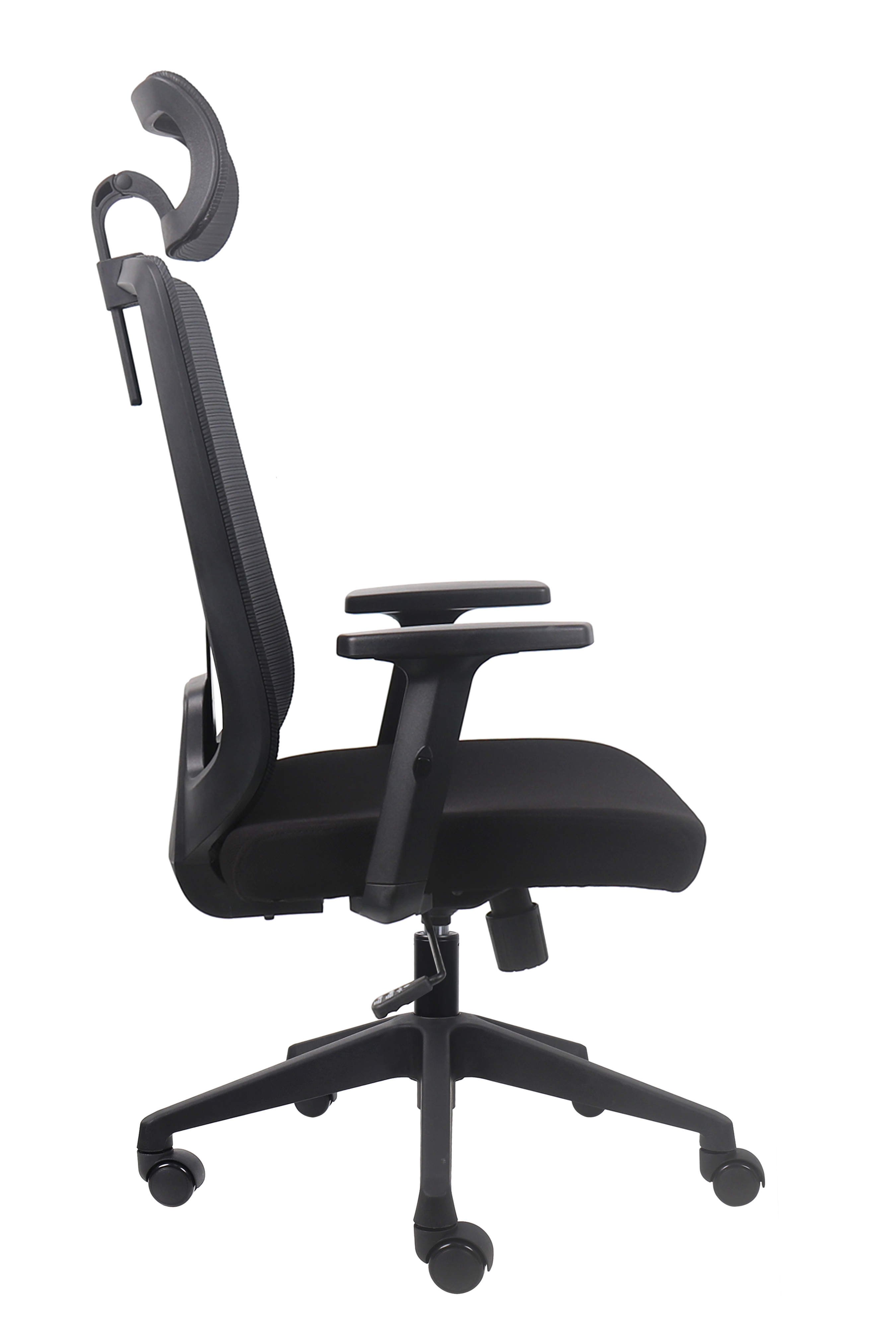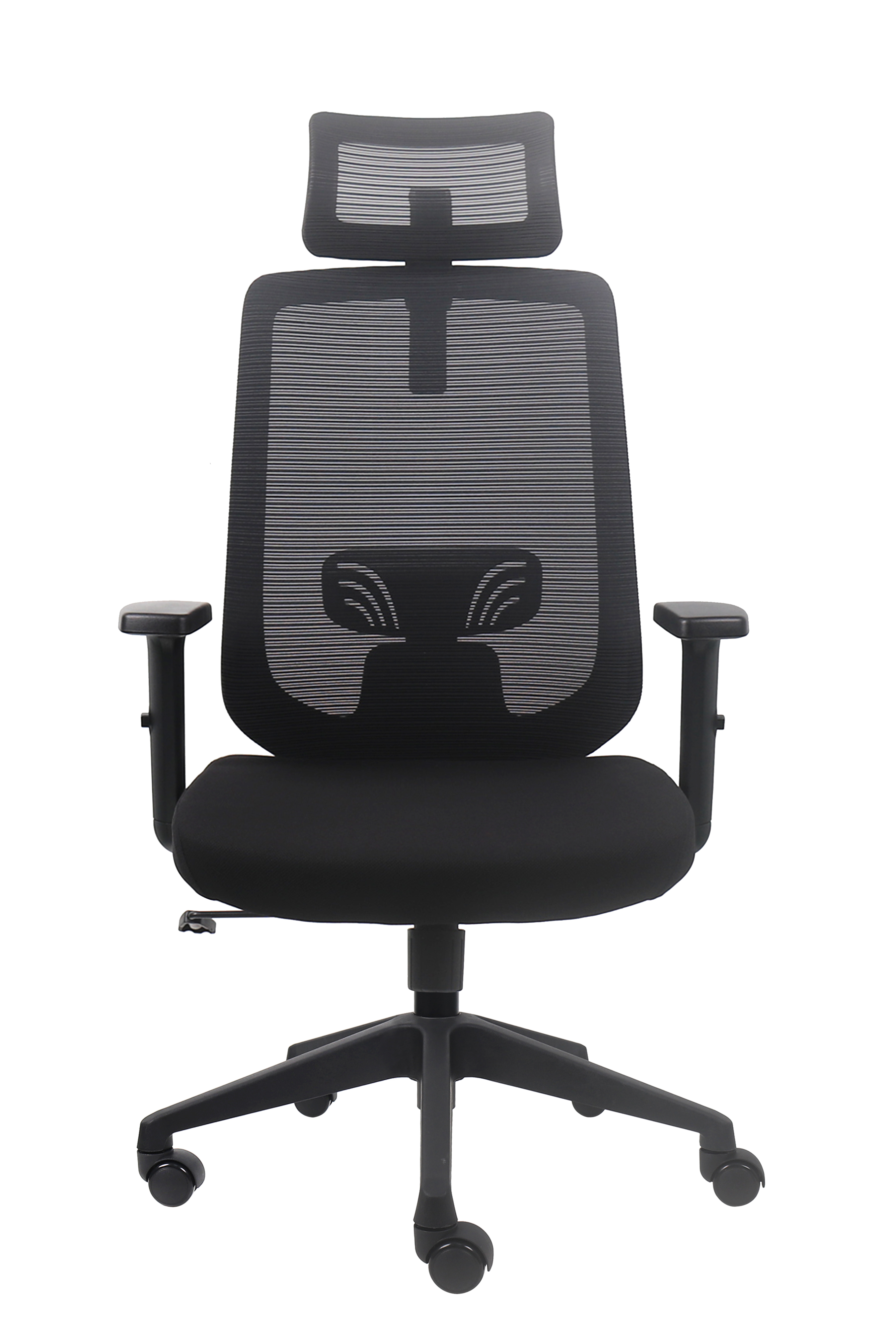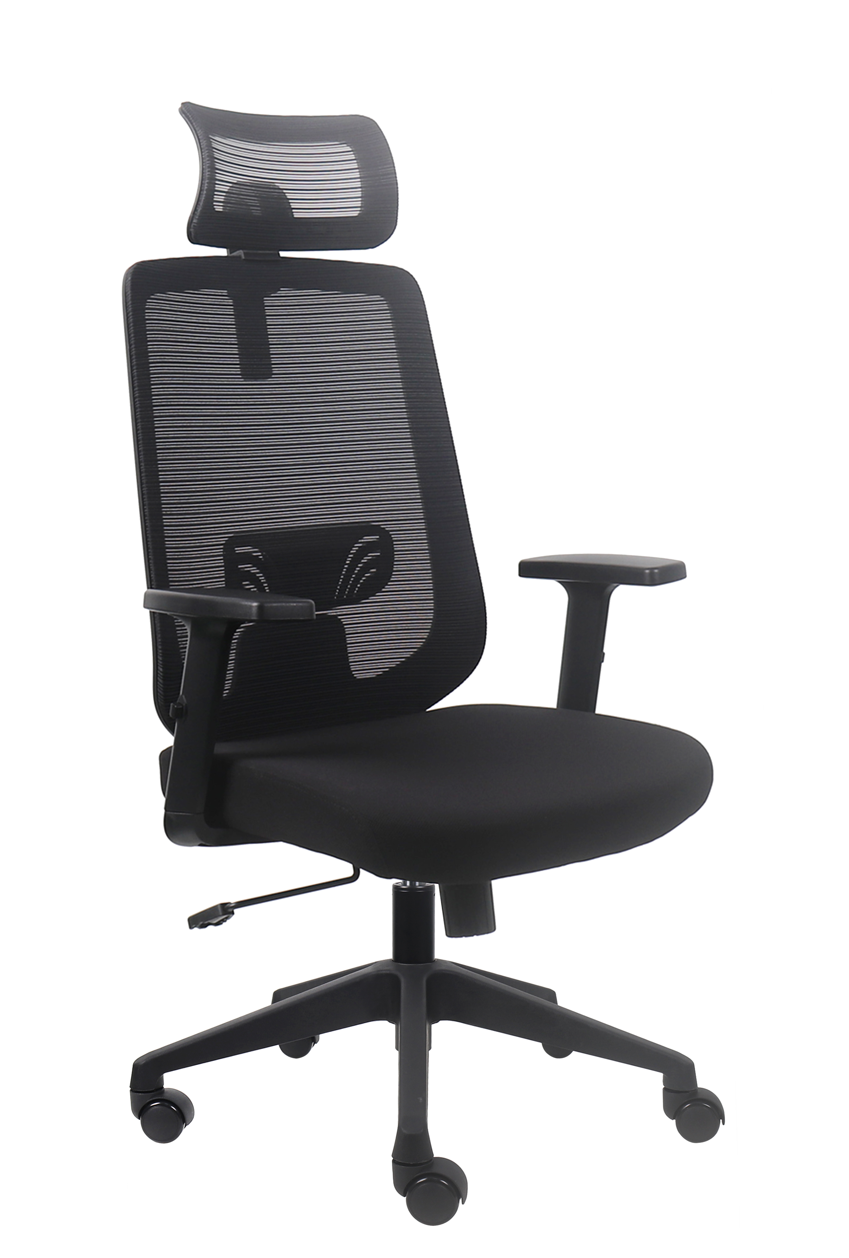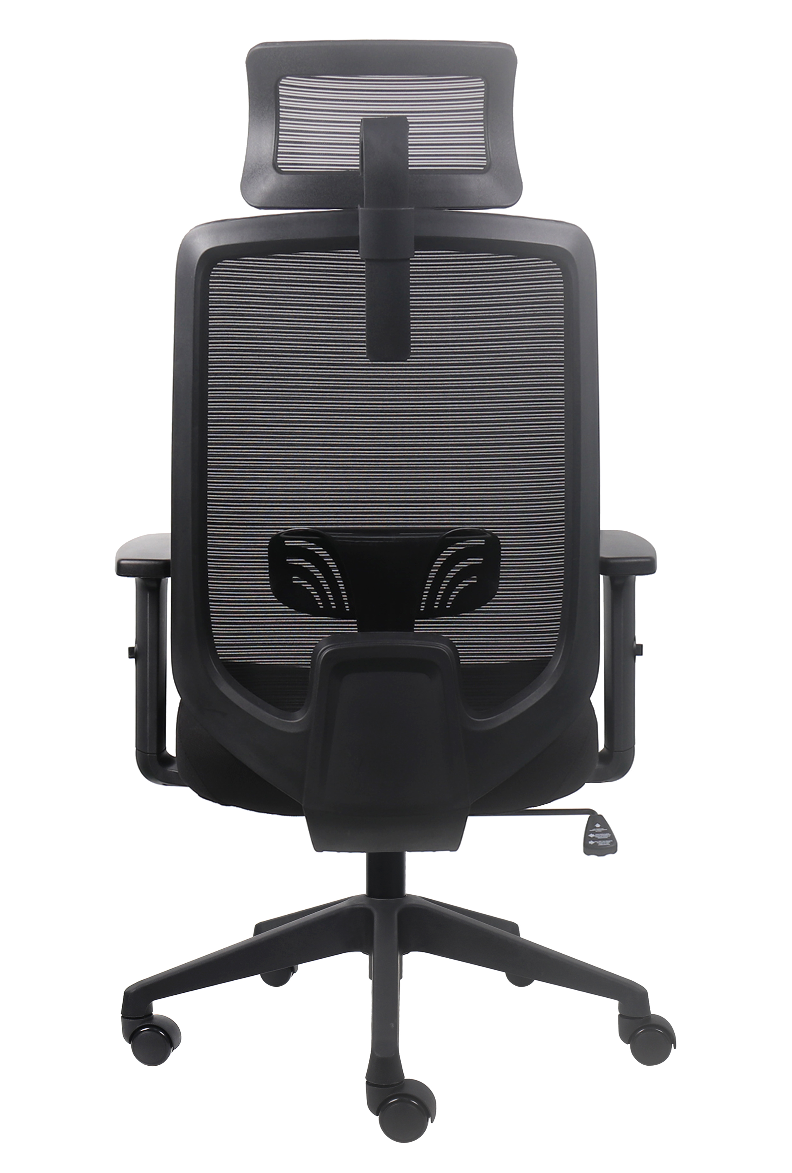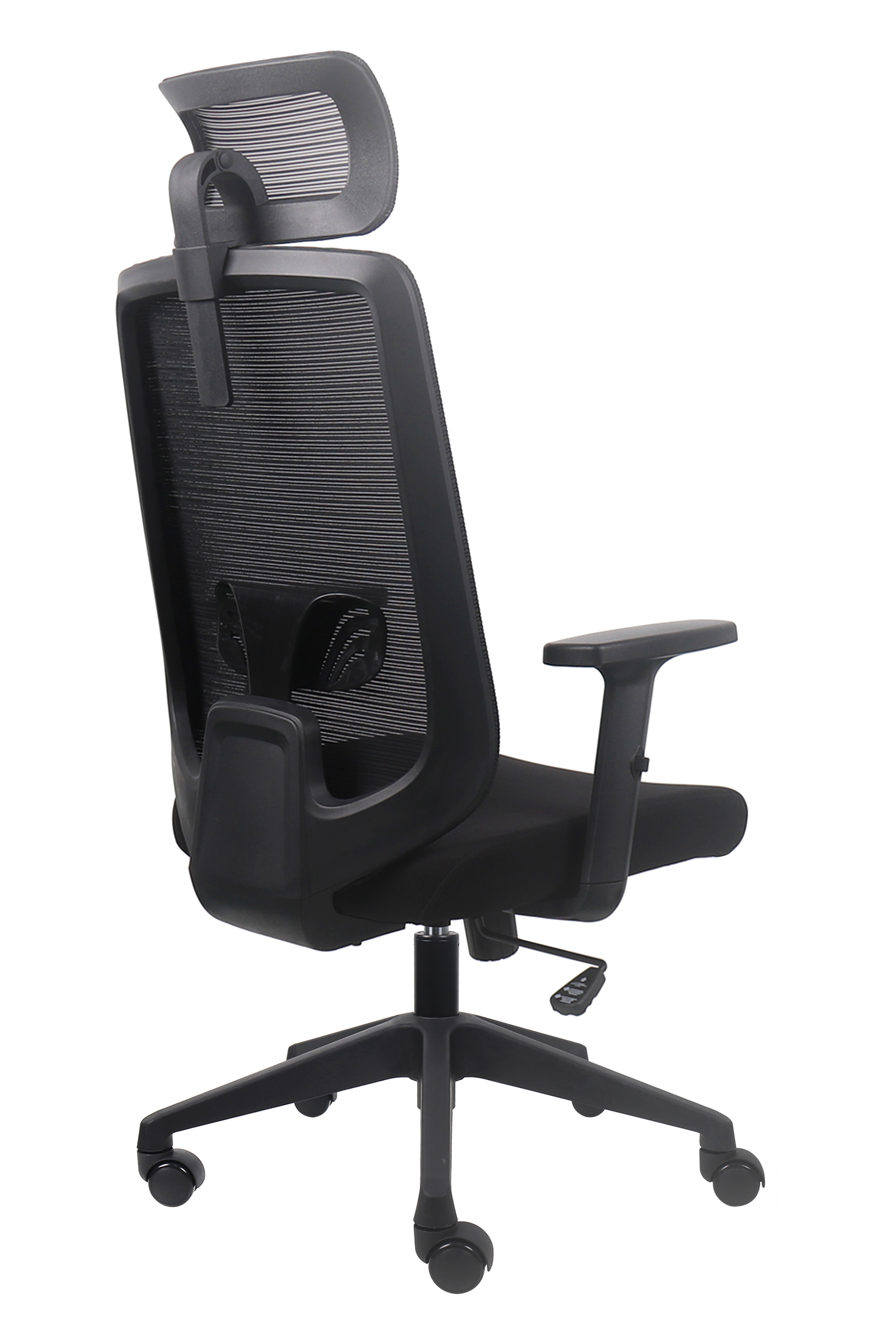 Fotel FACTOR posiada siatkowe oparcie oraz siedzisko tapicerowane pianką i tkaniną. Podłokietniki regulowane 1D. Regulacja wysokości oraz kąta nachylenia zagłówka tapicerowanego siatką. Mechanizm kołysania się z możliwością blokady w pozycji do pracy. Podparcie lędźwi regulowane na wysokość. Podstawa nylonowa z kółkami do powierzchni twardych.