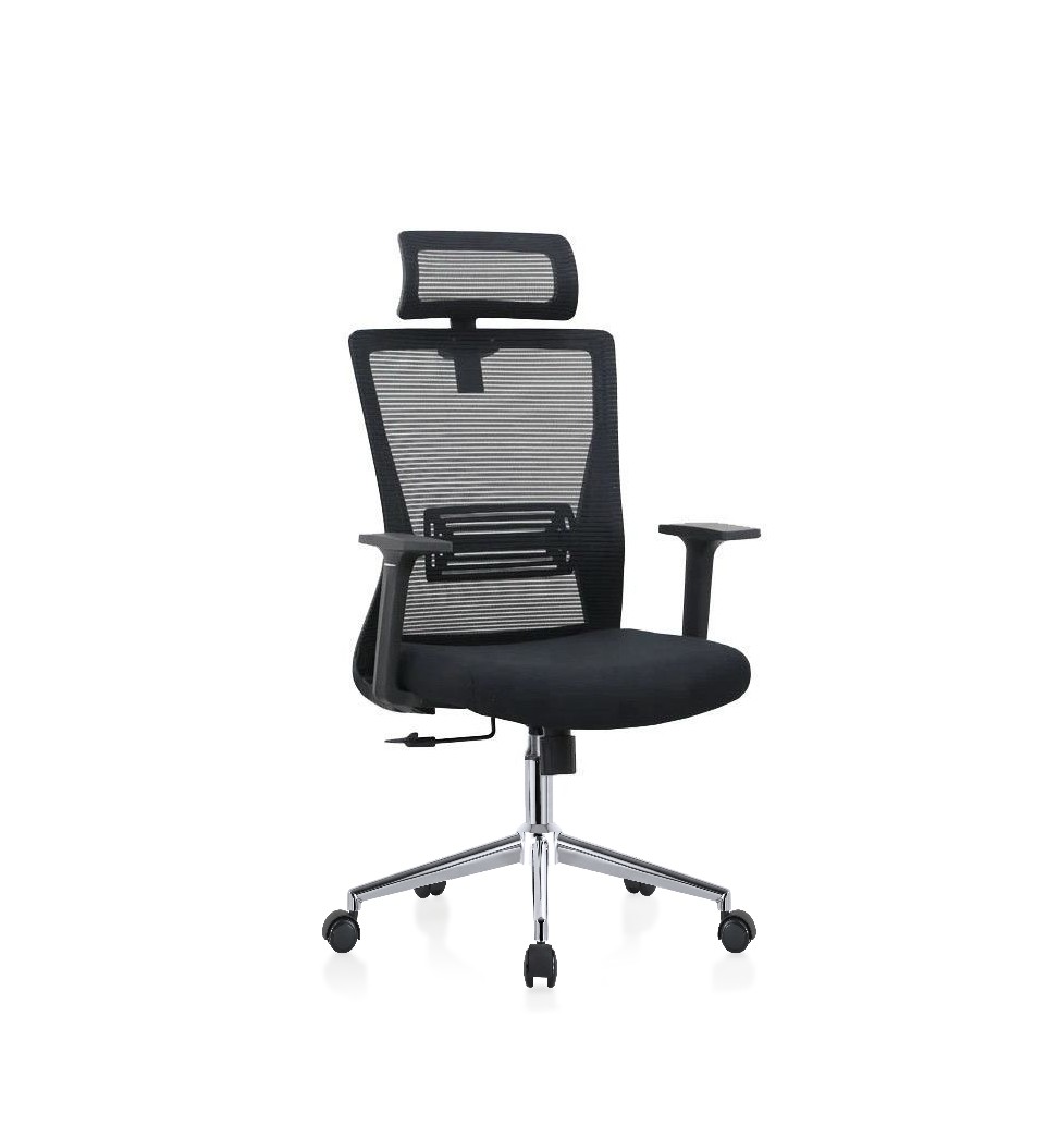 Fotel LIBRA posiada siatkowe oparcie oraz siedzisko tapicerowane pianką i tkaniną. Podłokietniki regulowane 1D. Regulacja wysokości oraz kąta nachylenia zagłówka tapicerowanego siatką. Mechanizm kołysania się z możliwością blokady w pozycji do pracy. Podparcie lędźwi regulowane na wysokość. Podstawa metalowa, chromowana z kółkami do powierzchni twardych.