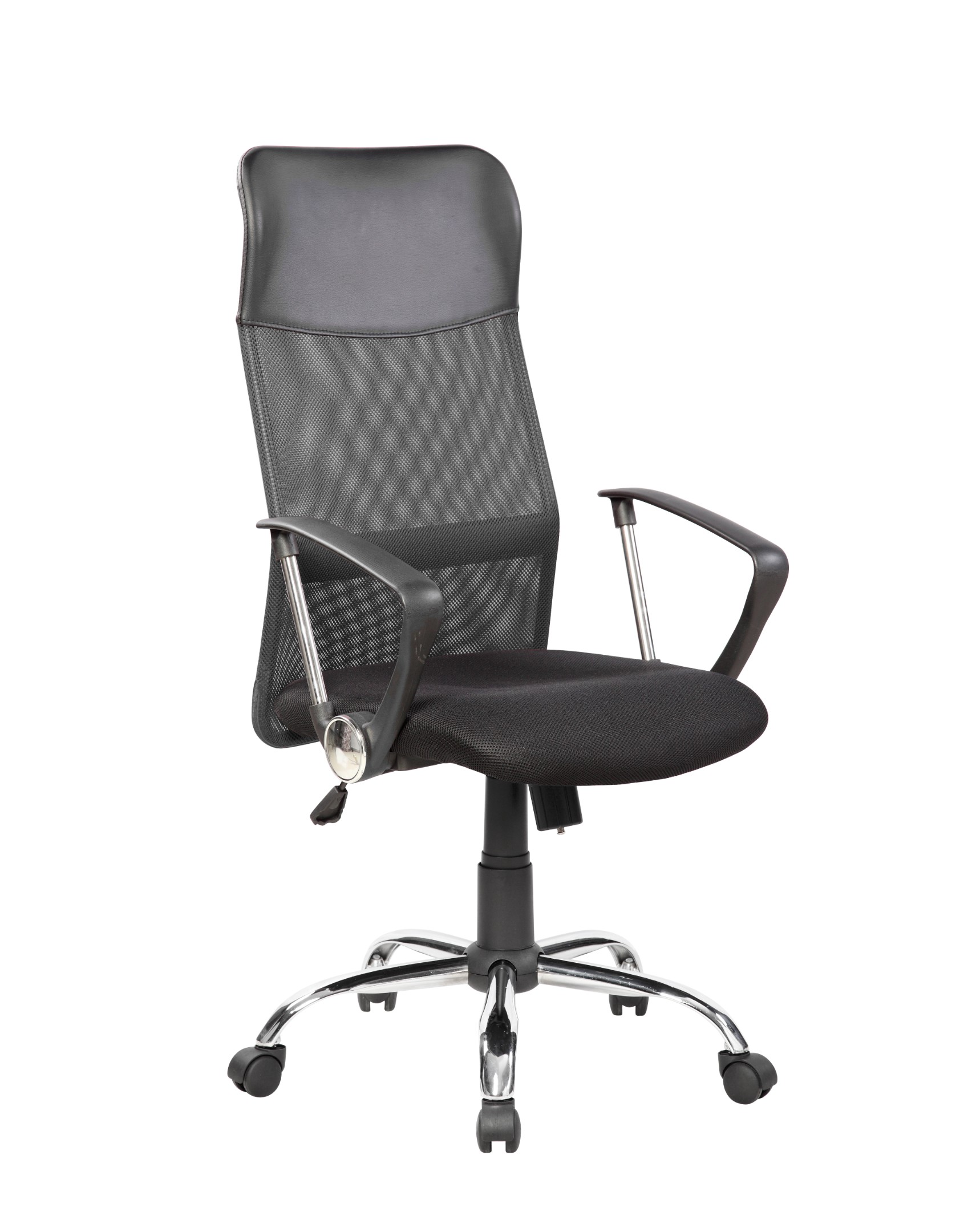 Fotel OXFORD posiada siatkowe oparcie w górnej części tapicerowane eko-skórą oraz siedzisko tapicerowane pianką i tkaniną 3D. Podłokietniki stałe. Mechanizm kołysania się z możliwością blokady w pozycji do pracy. Regulacja siły wychylenia oparcia. Podstawa metalowa, chromowana z kółkami do powierzchni twardych.