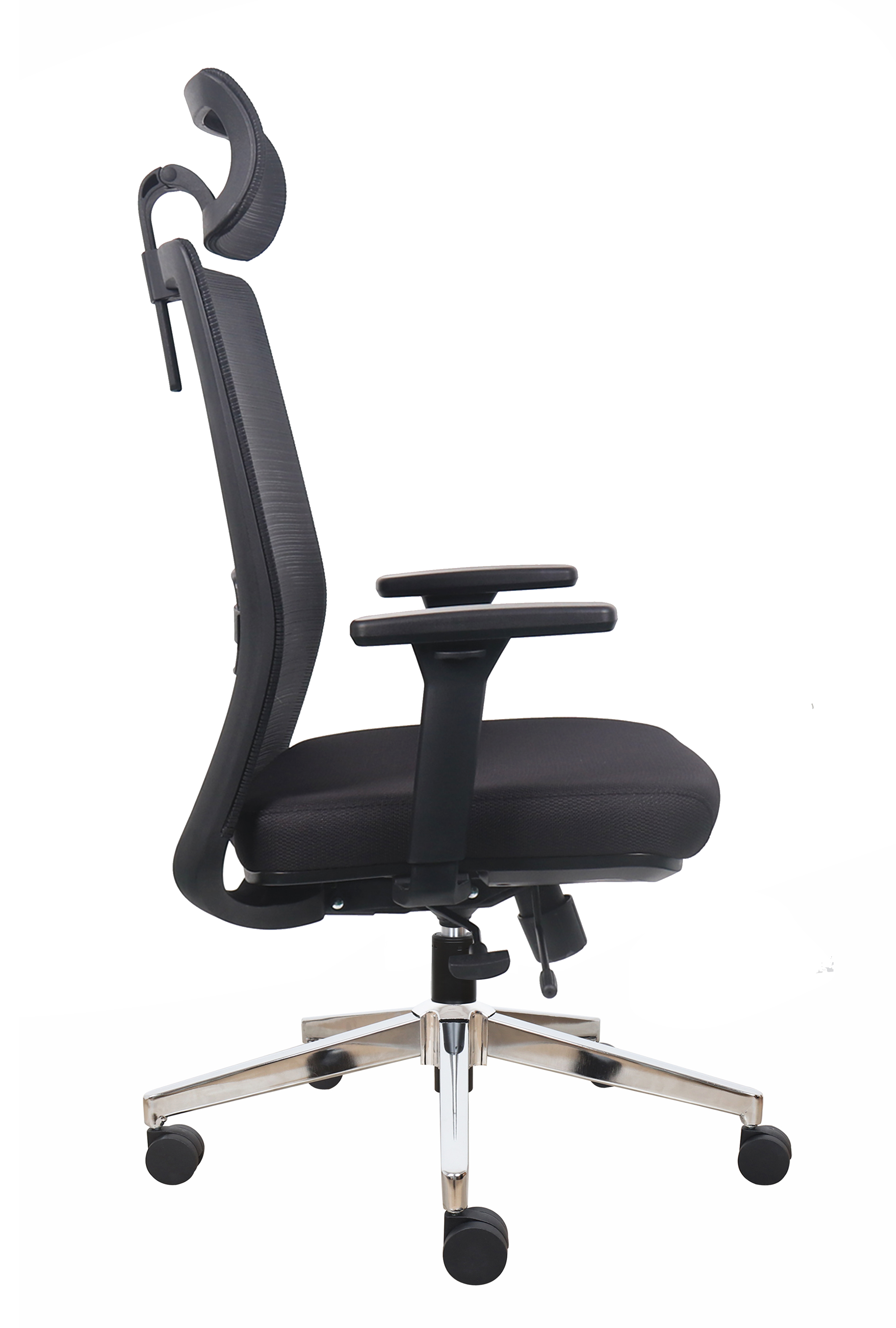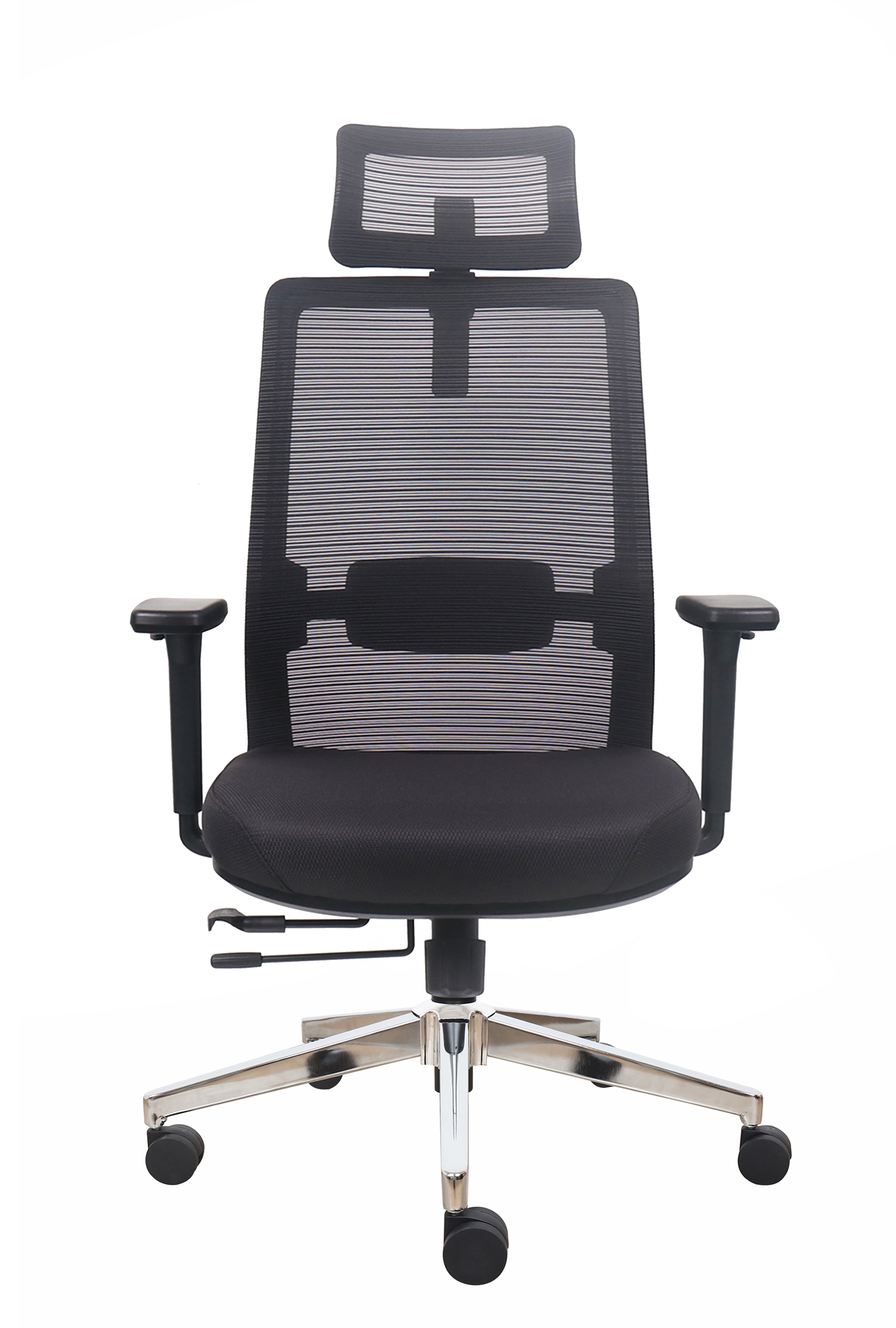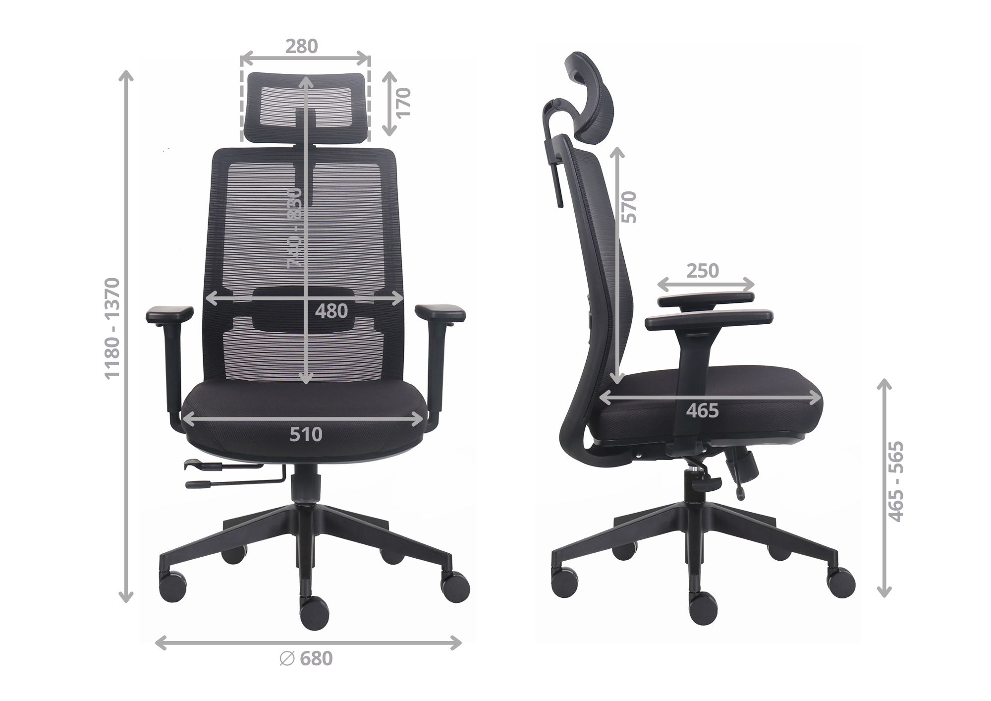 Fotel ergonomiczny PROSPERO SIATKA posiada siatkowe oparcie z zagłówkiem oraz tapicerowane pianką wtryskową i tkaniną siedzisko. Mechanizm z regulacją siły wychylenia oparcia. Wychył oparcia z możliwością blokady w trzech pozycjach z funkcją "ANTI SHOCK". Oparcie siatkowe. Podparcie odcinka lędźwiowego kręgosłupa tapicerowane oraz regulowane na wysokość. Zagłówek 2D tapicerowany siatką. Podłokietniki 3D z nakładką PU regulowane w pozycji: góra-dół, ruch nakładki przód-tył i na boki. Płynna regulacja wysokości krzesła. Metalowa, chromowana podstawa z kółkami do powierzchni twardych. Fotel posiada pozytywny Protokół Oceny Ergonomicznej