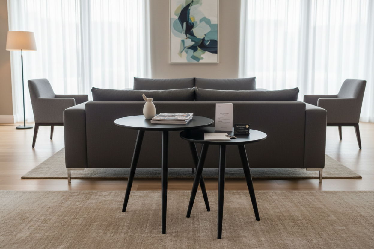 Zestaw stolików REDA czarny to elegancki i nowoczesny element wyposażenia każdego wnętrza, który doda stylu i charakteru Twojemu salonowi, sypialni czy biuru. Wykonany z wysokiej jakości materiałów, zestaw składa się z dwóch stolików – dużego i małego, które doskonale współgrają ze sobą. Charakterystyka produktu: Zestaw stolików REDA to idealne rozwiązanie dla tych, którzy cenią sobie funkcjonalność oraz estetykę. Dzięki swojemu minimalistycznemu designowi, doskonale wpisuje się w różnorodne aranżacje wnętrz.